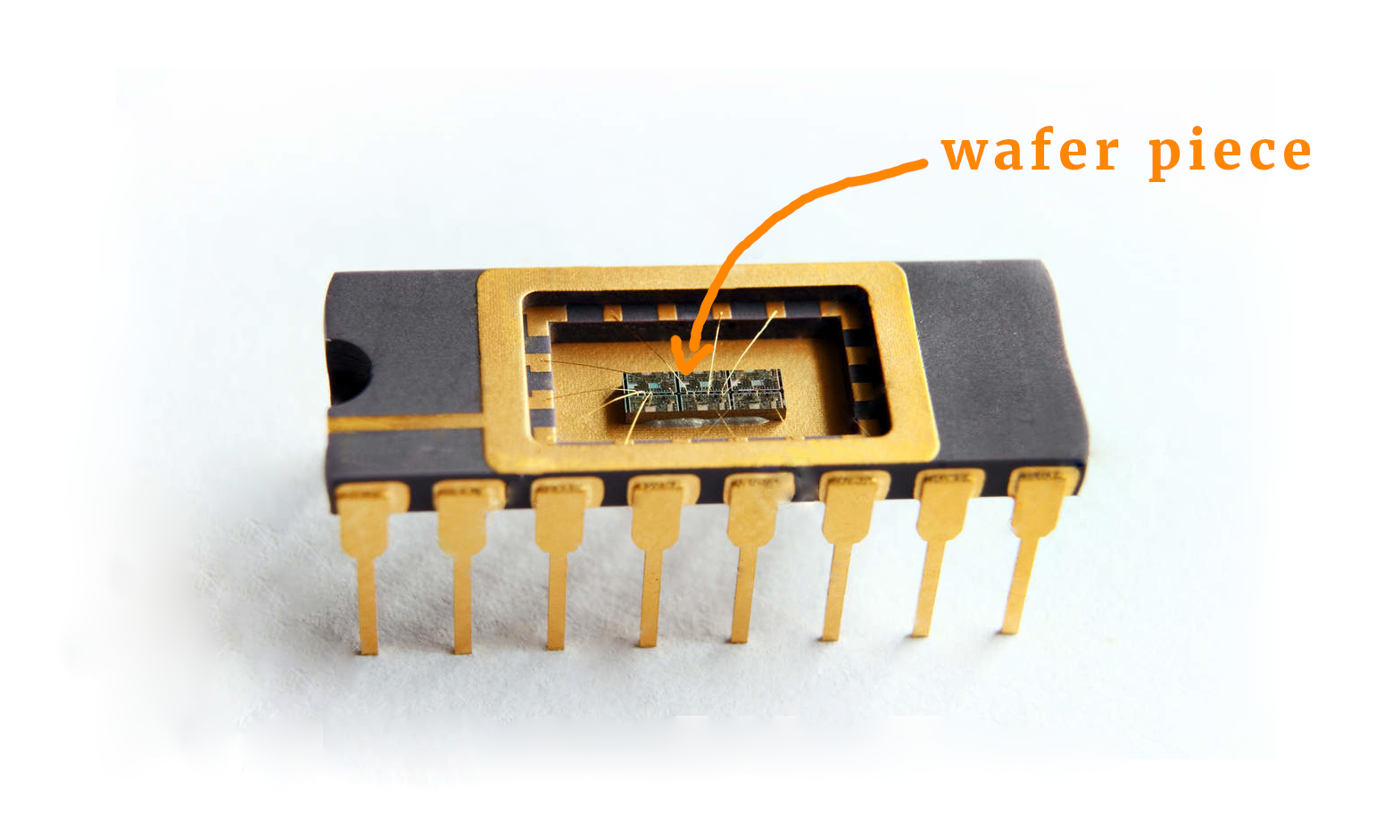 First off, CMOS stands for complementary metal-oxide-semiconductor. Great, now what? CMOS does not stand for one special integrated circuit or device but it stands for the technology that is used to build it. If you zoom in, any integrated circuit (or IC for short) is made of dozens, hundreds, or thousands of little transistors that are etched into a silicon wafer: