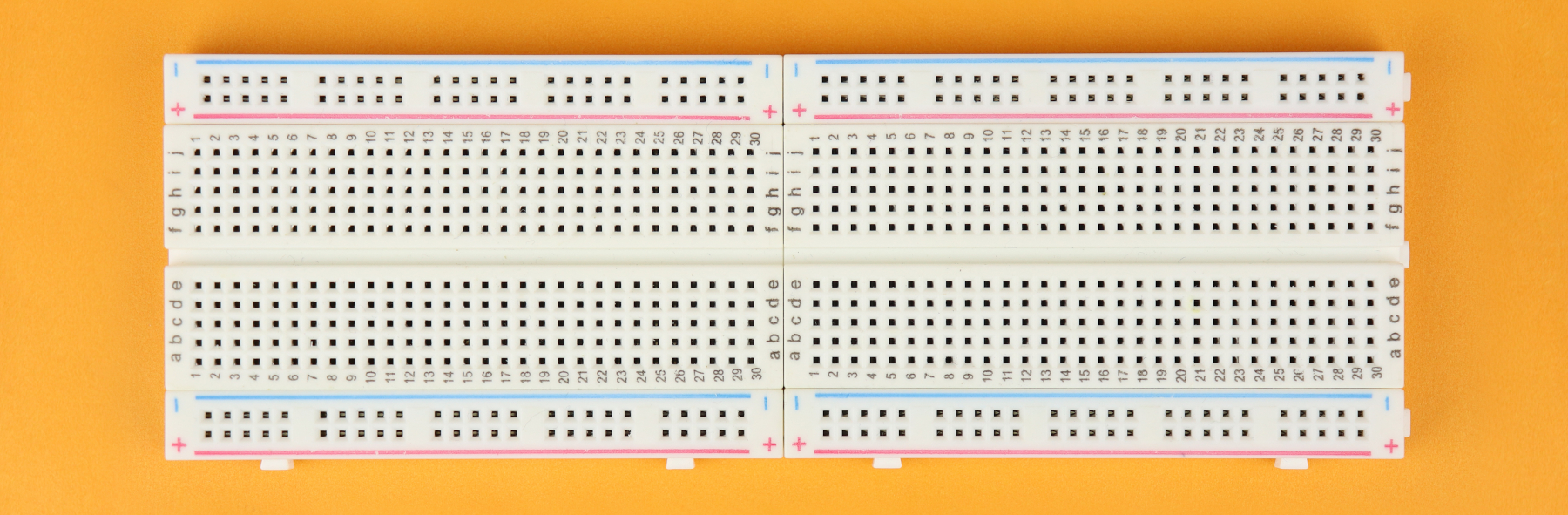 Place the two 400-pin breadboards in front of you and connect them to each other :)