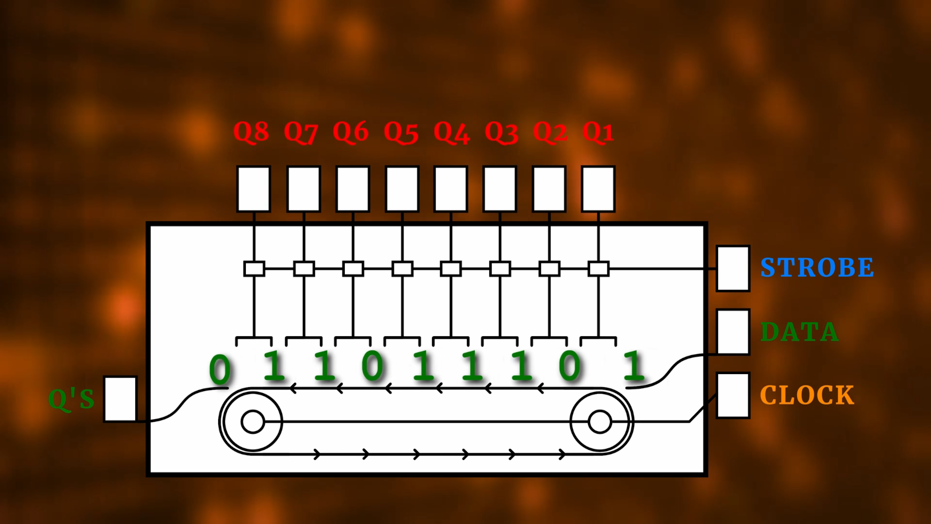 This is an animation I made for the CD4094 shift register, so the pins have different names, but the idea is the same. Here is the TLC5916 all by itself: