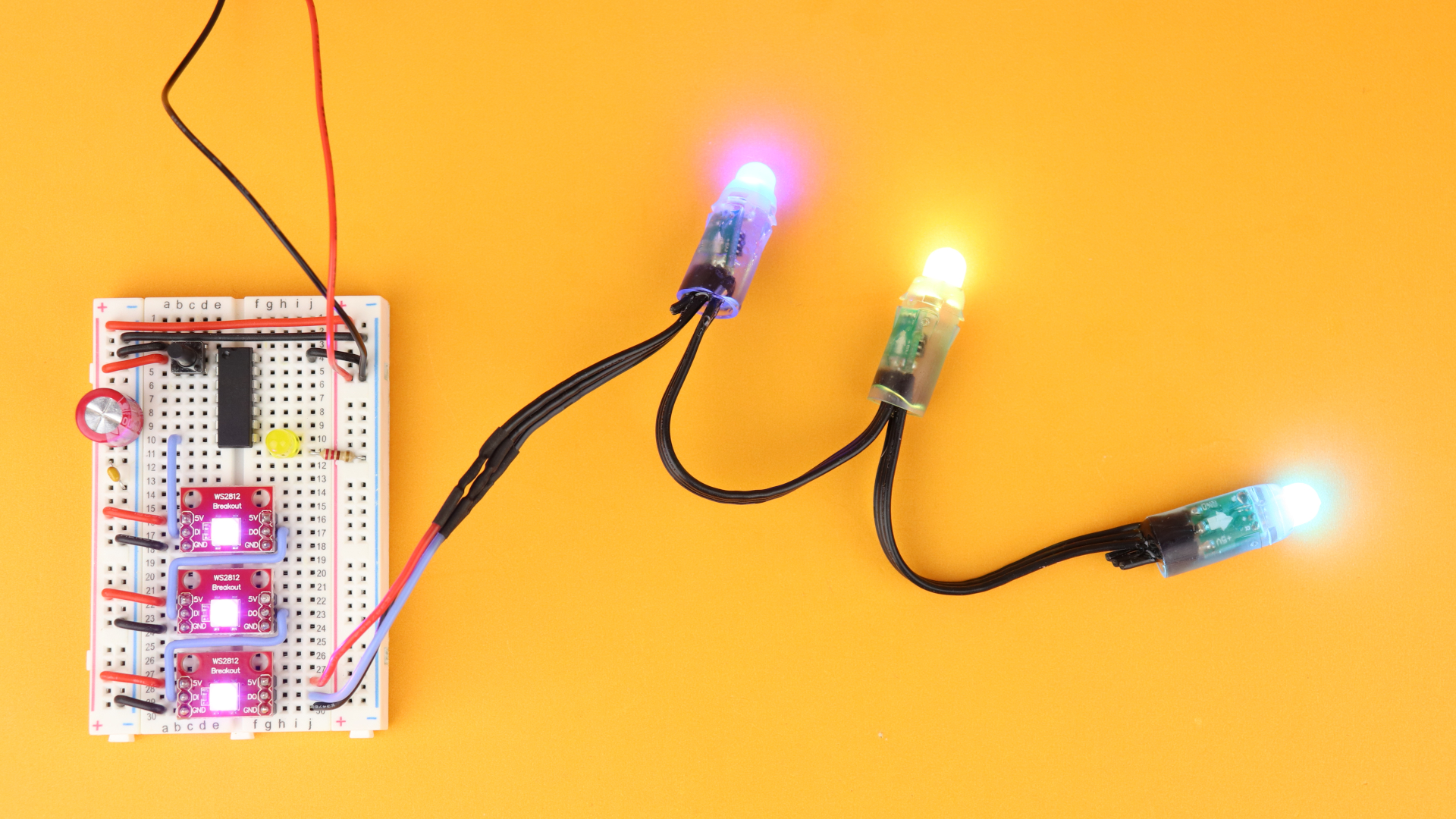 But what if you want to address multiple WS2812 LED modules, like in this picture here?