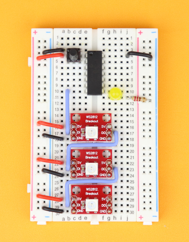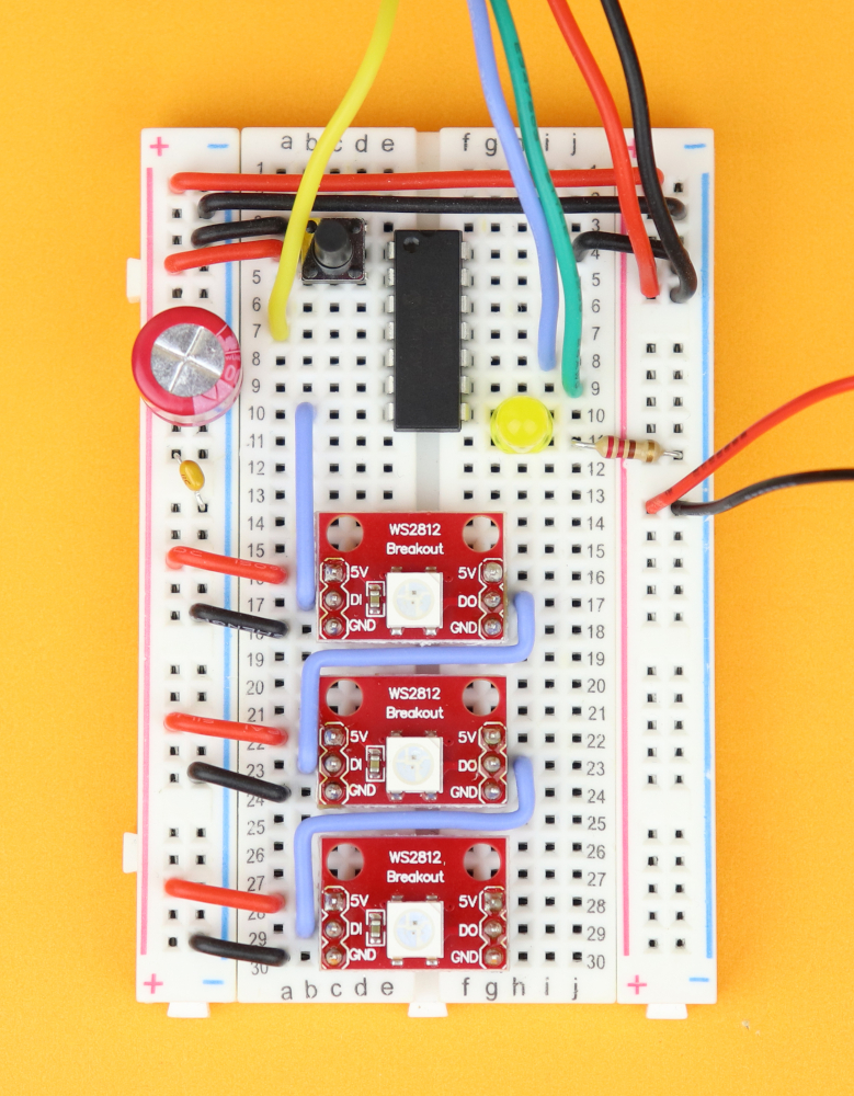 With the general idea of the WS2812 protocol out of the way it's time to have a look at the schematic for this tutorial: